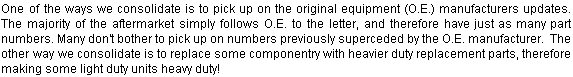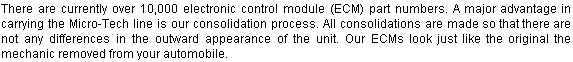 If a warehouse distributor stocks our complete ECM line, he could be saving as much as 60% in shelf dollars when compared to some of our leading competitors. Our consolidations do not compromise the life or operation of the unit in any way. If we cannot improve the unit through consolidation, we do not make the consolidation.